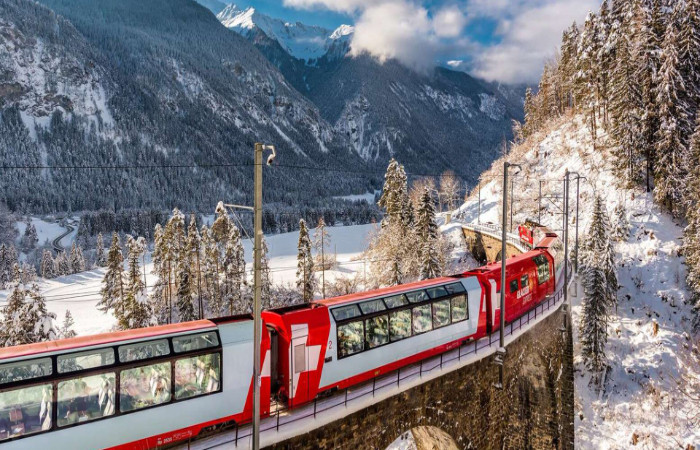 The Glacier Express is among the most renowned scenic trains globally. The train provides travellers with an excellent experience while passing through the Swiss Alps. The train links two of the most visited places in Switzerland, i.e., Zermatt, which is close to the renowned Matterhorn Mountain peak, and St. Moritz. The train is known for its gorgeous views. The Glacier Express is not only a mode of transportation; it allows you to witness the stunning beauty of Switzerland while traveling by first-class train.